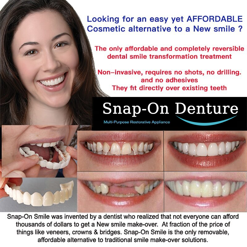 Do you often feel embarrassed about your smile or your imperfect teeth? No need to go to the dentist to have it fixed! Use the Snap-On Dentures instead and achieve the picture perfect smile you’ve always dreamed of but without costing you a fortune!
